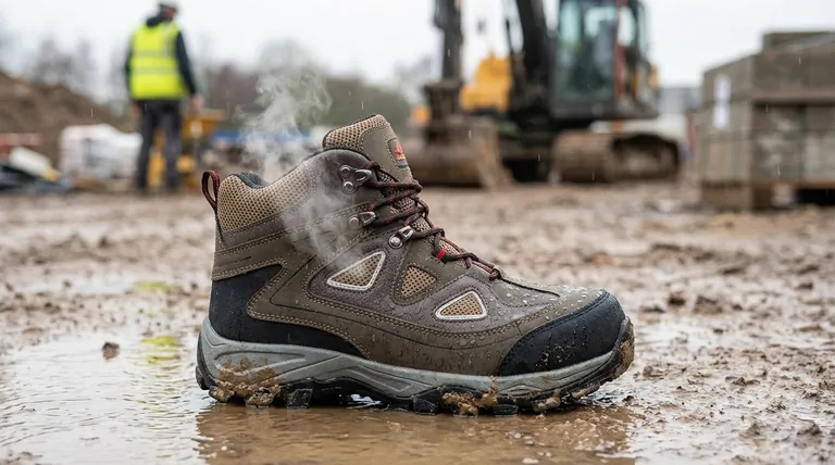 Le coupable n'est pas la pluie. C'est la demi-tasse de sueur que ses propres pieds ont produite, maintenant piégée à l'intérieur d'une coque non respirante. L'humidité crée des frottements, une ampoule se forme et ses pieds sont froids. Ce n'est pas seulement un inconfort ; c'est une fatigue cognitive. Chaque pas est une distraction lancinante, détournant l'attention des machines lourdes et des dangers potentiels autour d'elle.