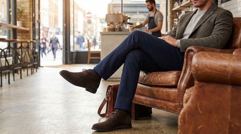 Le principe fondamental d'un look chukka décontracté et élégant est le contraste stratégique. Vous associez une bottine fondamentalement décontractée à des vêtements plus nets et plus intentionnels pour créer une tenue à la fois soignée et accessible.