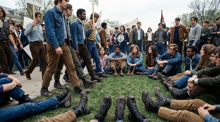 À la fin des années 1960, les étudiants ont transformé la botte de combat, d'un symbole d'autorité militaire, en un puissant emblème de rébellion contre-culturelle. Ils portaient ces bottes pour exprimer un éventail de convictions, notamment leur opposition à la guerre du Vietnam, leur rejet de la conformité sociale, leur soutien aux droits civiques et la promotion des idéaux féministes. Le simple fait de les porter était une protestation ironique, utilisant un outil de l'establishment pour critiquer l'establishment lui-même.
