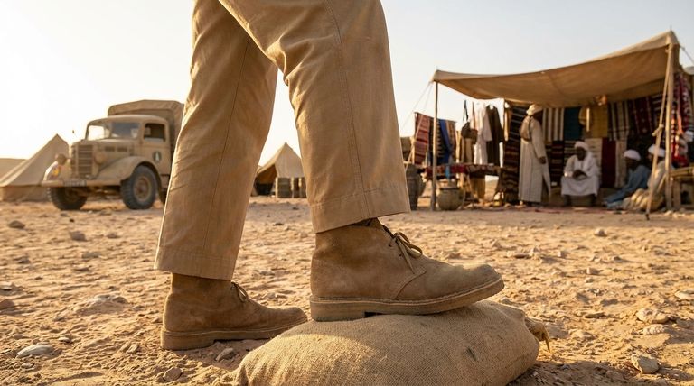 La desert boot moderne trouve ses origines directes dans la campagne d'Afrique du Nord de la Seconde Guerre mondiale. Ce n'était pas le produit d'un studio de design d'entreprise, mais une solution pratique développée par des cordonniers locaux du bazar Khan el-Khalili du Caire pour les officiers de la Huitième Armée britannique, qui trouvaient leurs bottes militaires réglementaires totalement inadaptées au climat désertique.