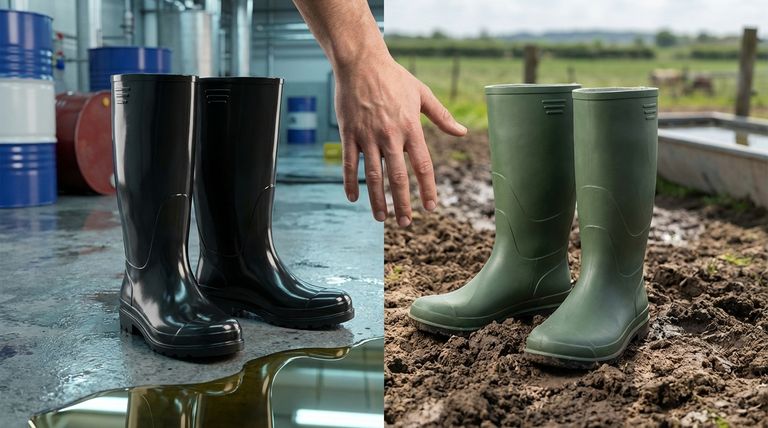 - Si votre objectif principal est le confort toute la journée pour l'agriculture ou l'utilisation générale en extérieur : la flexibilité et la durabilité du caoutchouc vous assureront plus de confort et une meilleure protection.