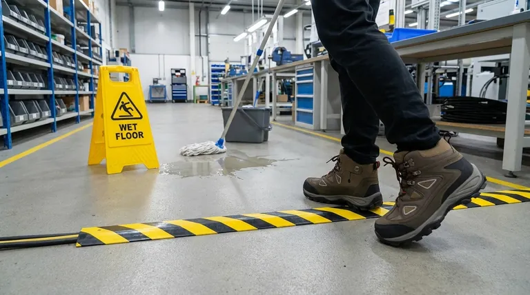 - Si votre objectif principal est un environnement de fabrication ou industriel : Mettez l'accent sur les protocoles de nettoyage immédiat des déversements, l'utilisation de matériaux de revêtement de sol antidérapants et le port obligatoire de chaussures antidérapantes.