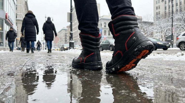 Les environnements urbains présentent souvent de la neige fondue, des flaques d'eau et des trottoirs mouillés. La construction imperméable est cruciale pour garder vos pieds au sec et éviter l'inconfort ou le froid. Cela protège à la fois des précipitations et du ruissellement urbain.